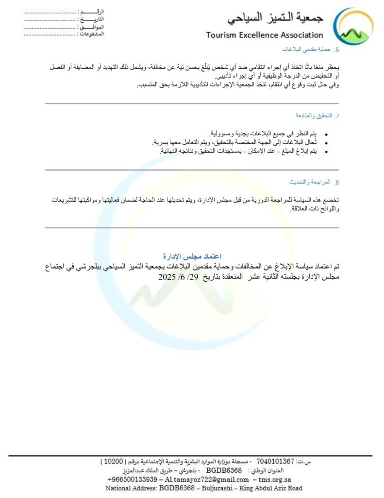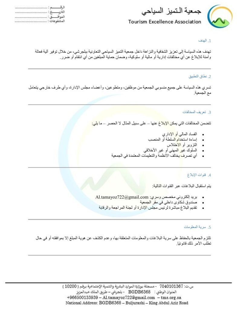 سياسة الإبلاغ عن المخالفات وحماية مقدمي البلاغات